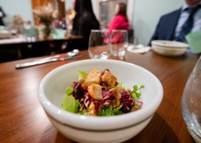 A Dinner to Remember is a special opportunity to showcase the incredible produce our farmers work so hard to grow. It also marks the close of a busy growing season and the beginning of the holiday season. For our youth employees on the café team, this event offers a refreshing change of pace from the hustle of our weekly pizza pop-ups. They have the chance to contribute to a fine dining experience, connect with guests in a quieter, more intimate setting, and demonstrate their skills by delivering exceptional service.